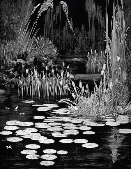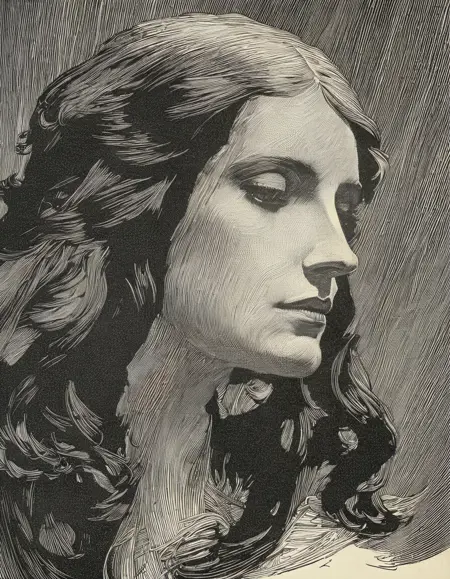 Same dataset as before, but trained only with a trigger phrase, `detailed pen-and-ink illustration by franklin booth`. To my surprise, it seems flexible enough. His style is detailed, so it helps to find a way to render as large as possible.