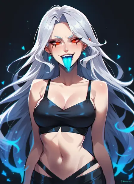 'glowing'을 사용하여 물체가 빛나도록 하세요(빛나는 피부 무늬, 빛나는 눈, 빛나는 혀 등).