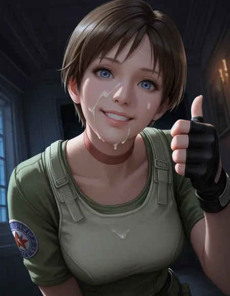 긍정적 프롬프트: Rebecca Chambers, blue eyes, fingerless gloves
