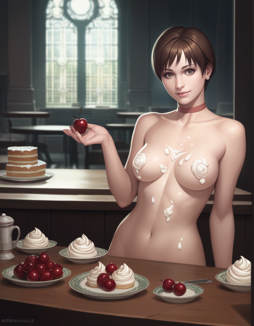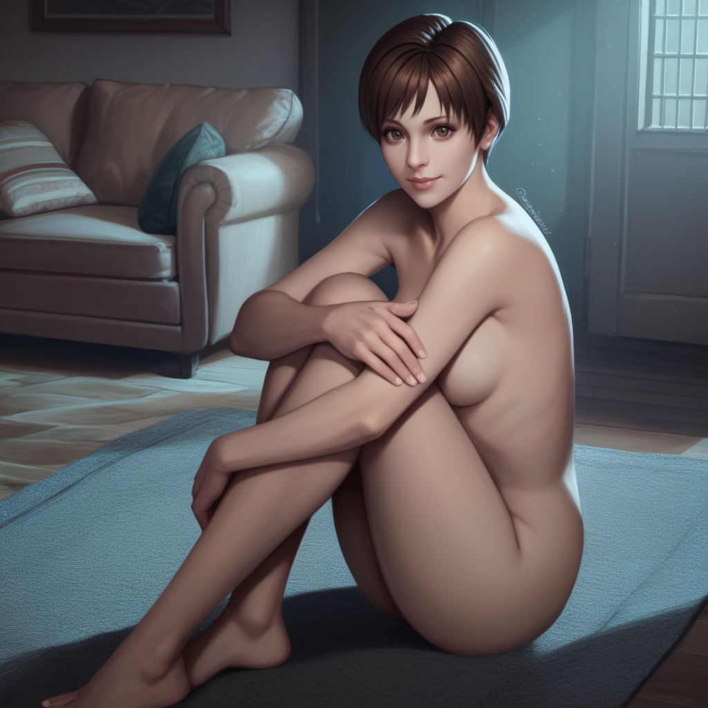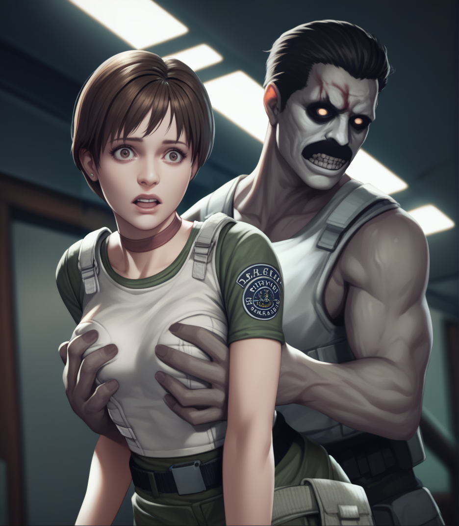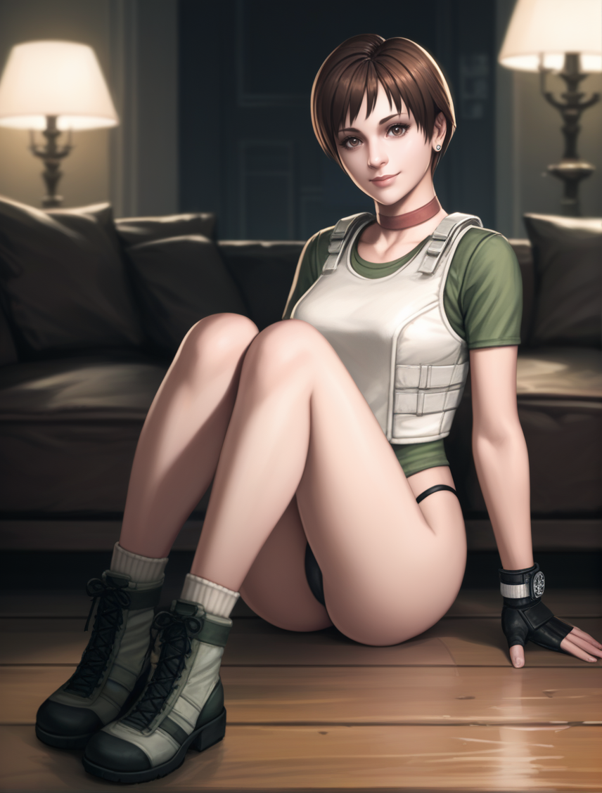 Trained on images of Rebecca from RE1 and other games where she has the same design. A large part of the training set are 3D images, so it might lean towards that at times, but you can control that via the prompt.