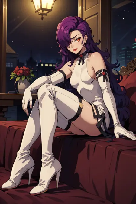 • 기본 외모: mnetrSMT, 긴 머리, 한쪽 눈 위의 머리카락, 색깔이 있는 공막, 립스틱, 흰색 드레스, 짧은 드레스, 어깨 노출, 목걸이, 팔꿈치 장갑, 허벅지 부츠, 하이힐 부츠
