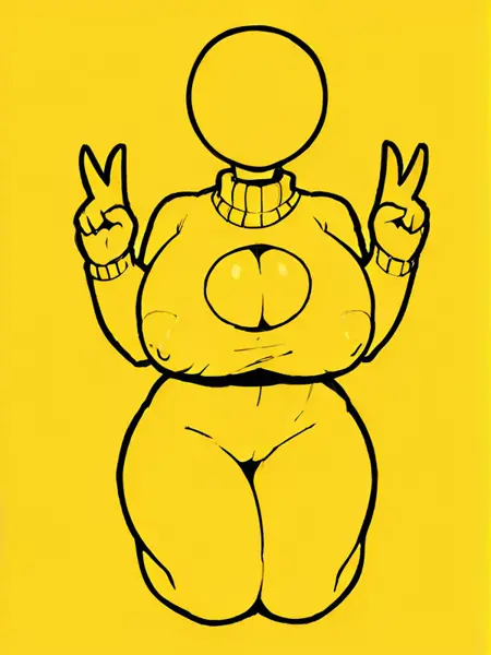 黄背景、黒線画、黄色い体 - たった2枚しかないよw