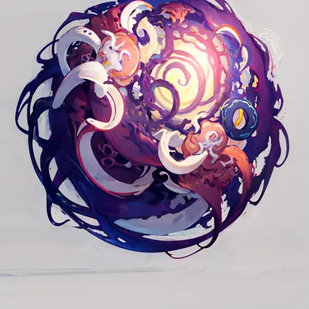 ice, fire, black hole, earth, moon, lightning, tentacles, abstract, eye, yellow theme……