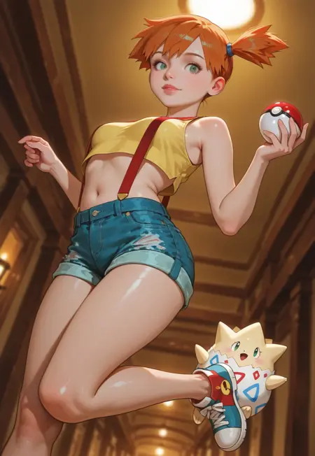 提示词激活器:1girl, Misty (/pokemon)/, (ultra HD quality details), orange hair, (green eyes), beautiful face,