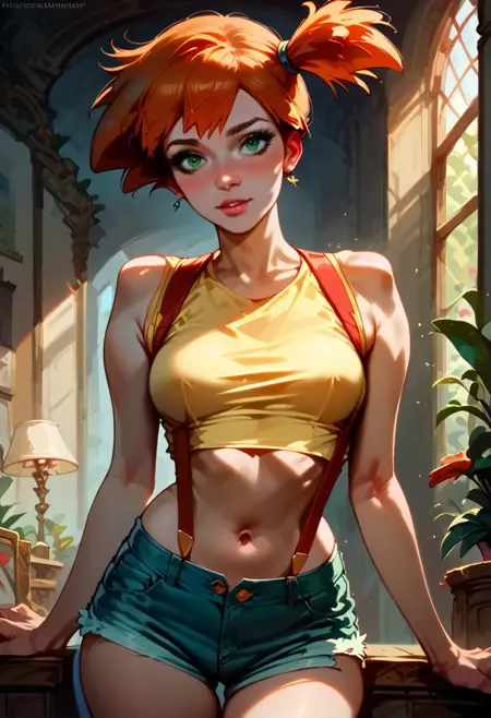 提示词激活器:1girl, Misty (/pokemon)/, (ultra HD quality details), orange hair, (green eyes), beautiful face,