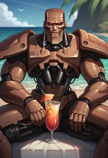 score_9, score_8_up, score_7_up, score_6_up, score_5_up, score_4_up, lora:Hammerstein:0.9 로봇, 인간 없음, 과학소설, 메카, 혼자, 리얼리스틱, 빛나는, 붉은 눈, 케이블, 측면 시점, 전신,