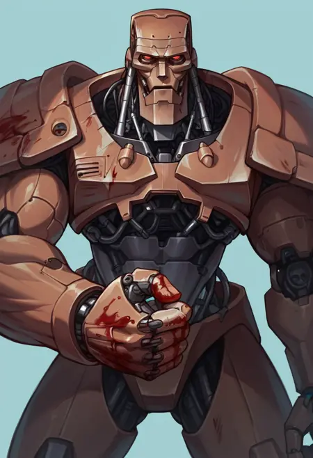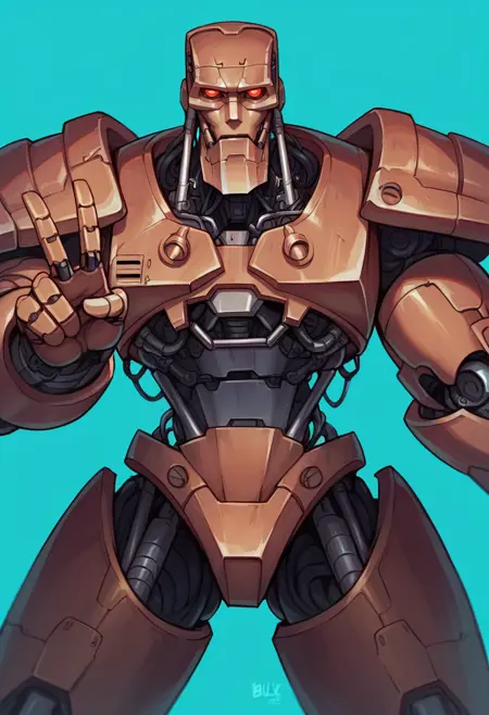 score_9, score_8_up, score_8, source_anime, lora:Hammerstein:0.7 로봇, 무거운 갑옷, 거대한, 인간형 로봇, 인간 없음, 과학소설, 메카, 혼자, 빛나는, 붉은 눈, 정면 시점,
