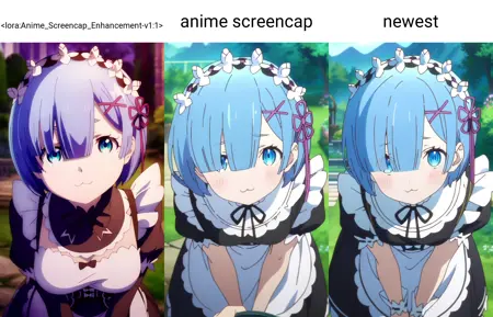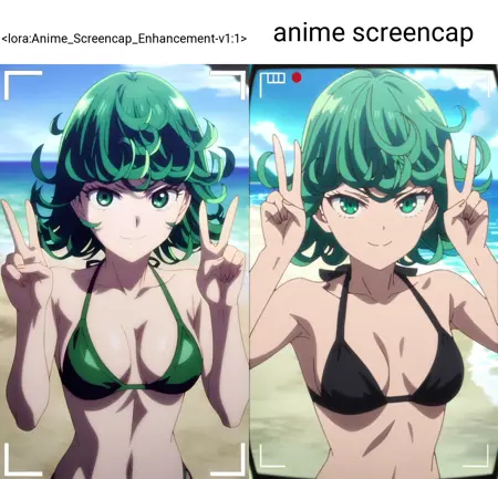 If you don't add "anime screencap" and just add the trigger word, you will also get an improvement but not the style, here is an example: