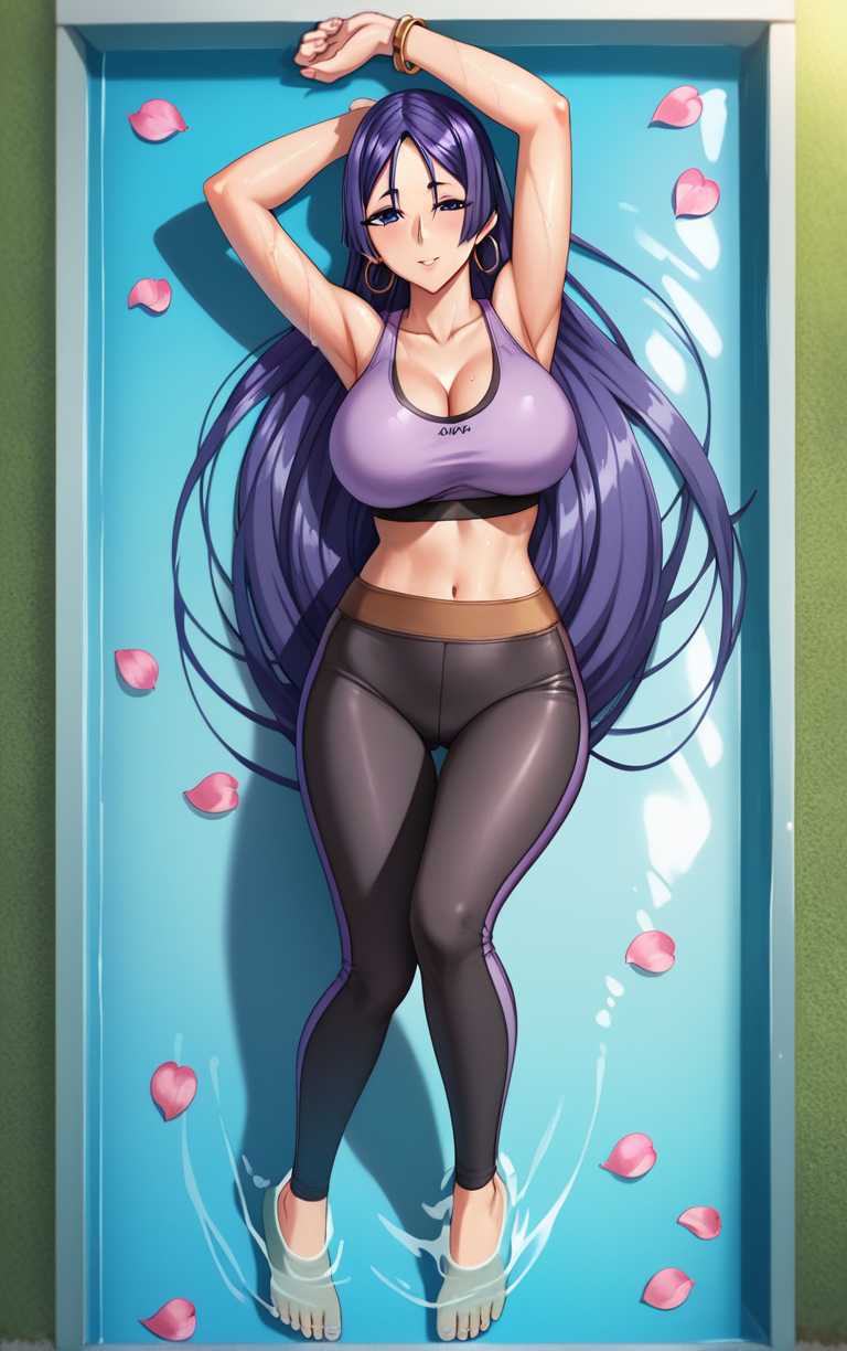 紫色紧身衣,无指手套,黑色手套,肋条袖,遮盖肚脐,日本盔甲,臂甲,兜裆布,盔甲,护臂,短罩衣,剑鞘,不可能紧身衣,亮面服装,红绳,