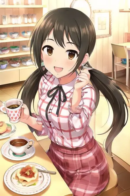 Trigger Words: nakano yuka, brown eyes, black hair, low twintails