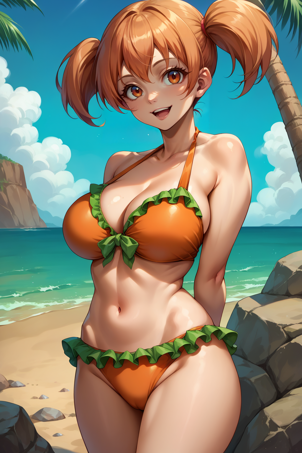 衣装2:ツインテール、フリル付きビキニ、オレンジ色のビキニ