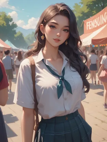 Adjust the facial appearance and body proportions, with more realistic background details.