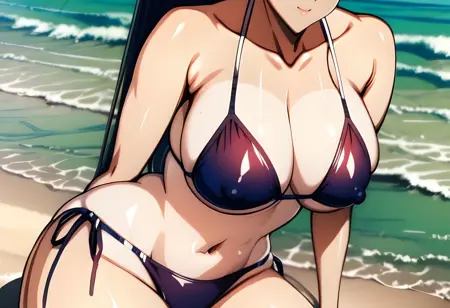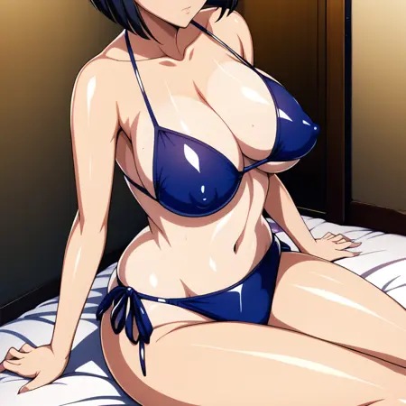 服装:swimsuit, bikini, side-tie bikini bottom, one-piece tan, covered nipples, cameltoe