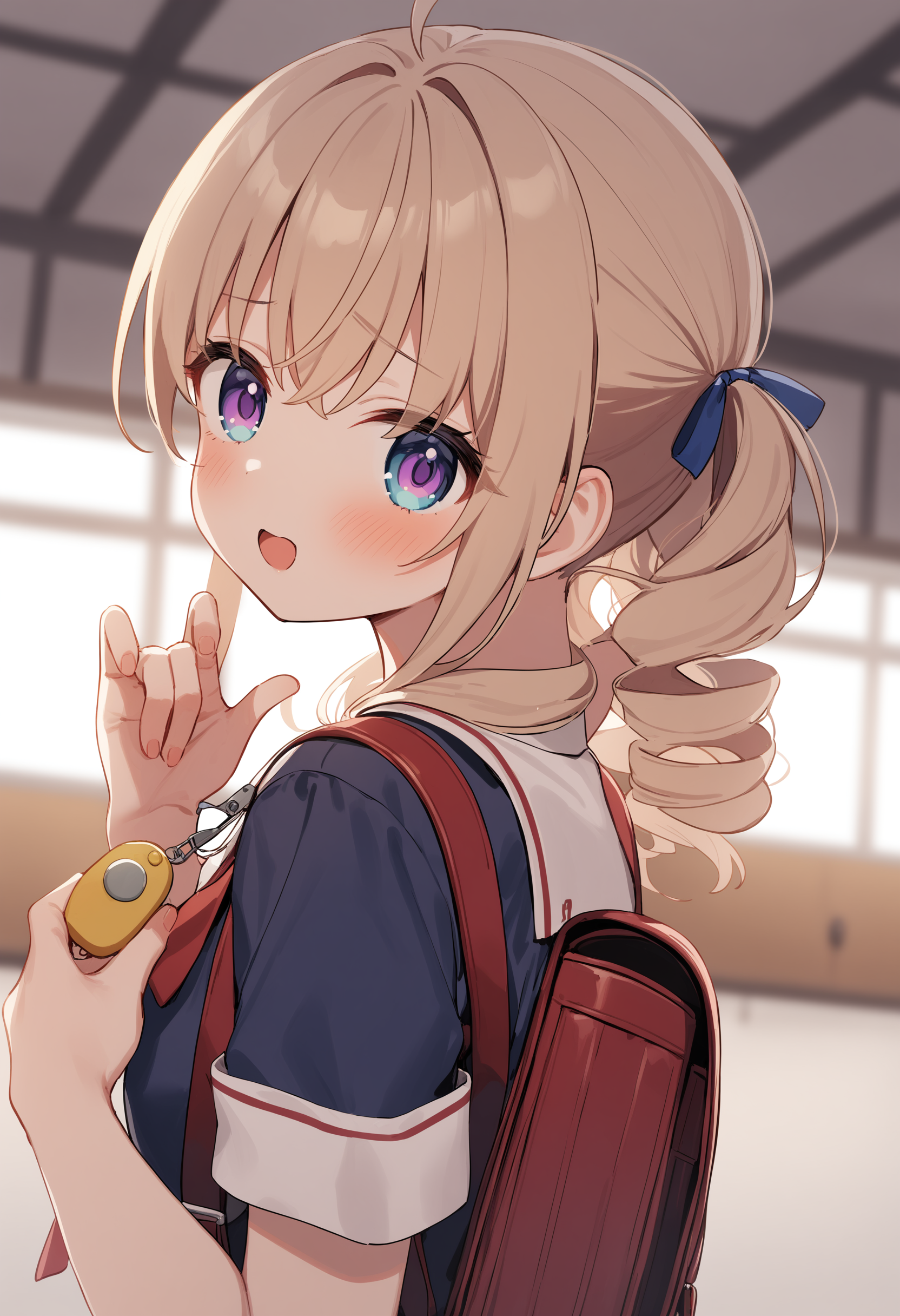 일본의 특히 여학생들이 지니는 방범 부저를 소지하도록 하는 LoRA입니다. 상당수의 초등학교나 지역에서 배포되는 노란색 부저가 기본적으로 등장합니다. 이 부저는 학생 가방의 어깨 끈 부분에 금속 스트랩으로 고정되어 있으며, 중앙 버튼을 누르거나 끈을 당기면 매우 큰 소음을 내어 주변에 도움을 요청하고 의심스러운 인물을 위협하는 제품입니다.