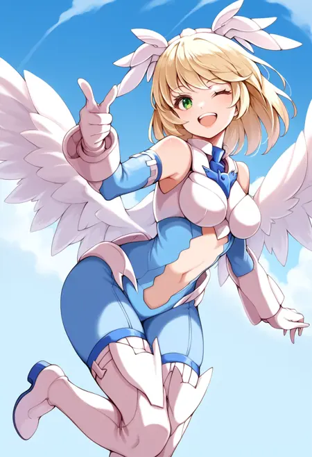 タグ(その他):肘手袋、太ももブーツ、ボディスーツ、小さな翼、大きな翼、頭部の翼、ちび
