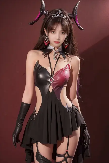 horns,earrings,asymmetrical legwear,elbow gloves,gem,tiara