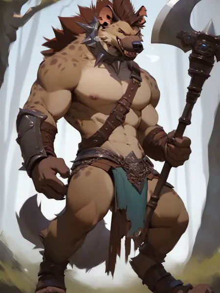 ヒューマンハイエナのフィクション生物、グノール。Fluffyrockモデルでトレーニング済み。