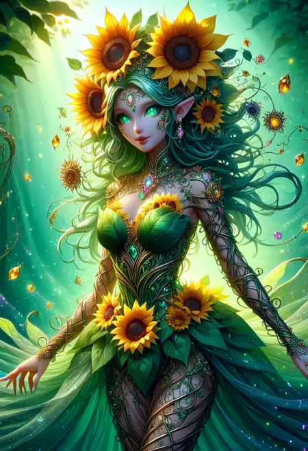 this is a LoRa trained to create flower druids. They can be all the way from full flower humanoid to a girl wearing a flower themed outfit