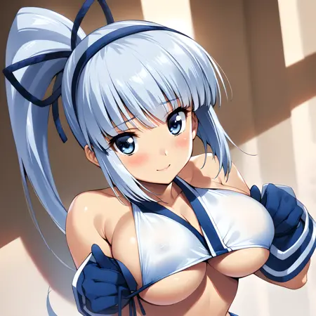 使用标签 "mina majikina",后接 "银发、蓝眼、马尾、大胸"。