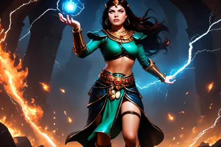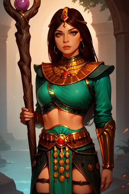 • 触发词:src,长发,王冠,项链,露脐上衣,圆环耳环,护臂,腹部,腰带,裙子,大腿绑带,靴子