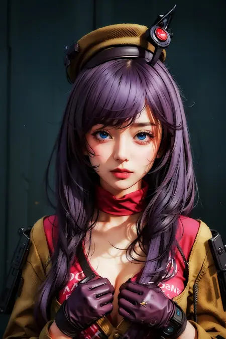 트리거: Ksenia, 1girl, 보라색 머리, 파란 눈