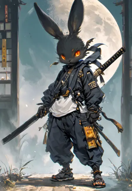 这是一个拟人化兔子 LoRA。提示词参考示例图和返图区。