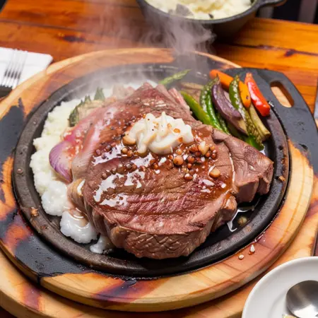 使用此 LORA,你可以获得台湾夜市经典小吃铁板牛排的图像。由于本次采用了常规的训练方法,图像的整体结构不会有太大变化,但细节可以通过提示词进行调整。