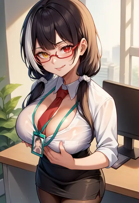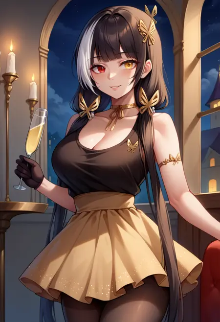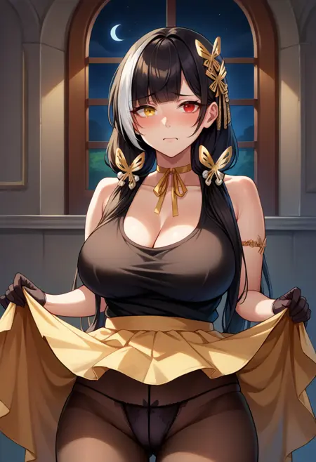 注意: 他の髪の側面で白髪になることがあります。良い生成を得るまで繰り返してください。太ももストラップや太ももポーチは一貫しない場合があります。