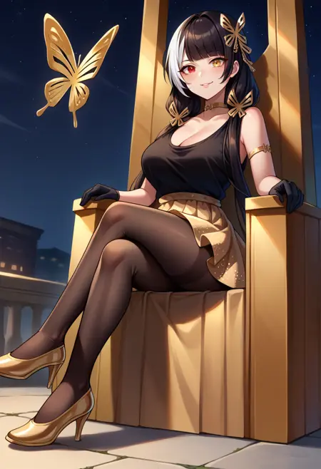 全身ショットを生成する場合は、膝パッドと靴を使用して、彼女の完全なMod3衣装を再現してください。Enforcer of the Lawの衣装の場合は、ハイヒールと黄色い靴を使用してください。
