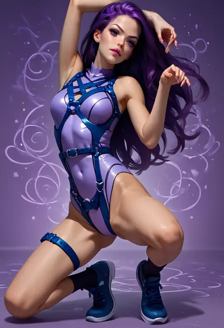 私はアマゾン、アリババ、イーベイの広告でこのボディスーツとハーネスアイテムを頻繁に見かけ、とてもカッコいいと思いました。ウェブを検索して見つけられるすべての画像をスキャンしました。ボディスーツ単体の画像やボディスーツとハーネスが一緒に写っている画像は多く見つかりましたが、ハーネス単体の画像はほとんど見つかりませんでした。最も一般的な色の組み合わせは紫のボディスーツと青のハーネスですが、あらゆる色の組み合わせを生成できるでしょう。