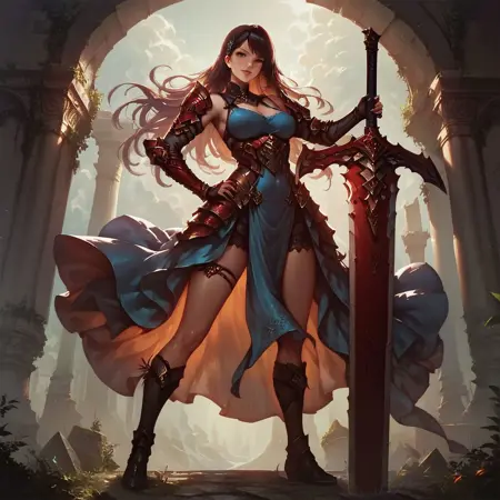 (v1 of Girl w/ Big Sword lora not recommend to be used on its own.)