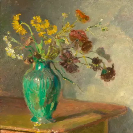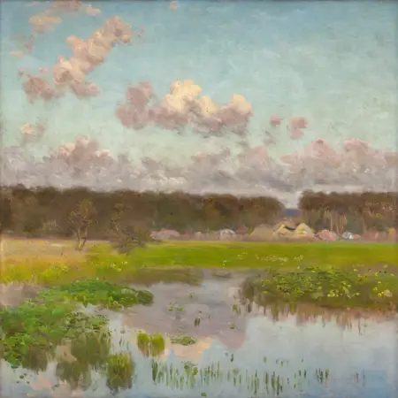 Józef Chełmoński (1849-1914) was one of the most prominent Polish painters of the Realism period. He is best known for his dynamic genre scenes and landscapes depicting Polish countryside and nature. Chełmoński studied in Warsaw, Munich, and Paris, where he gained recognition for his realistic, lively paintings. His most famous works include "Babie lato," "Czwórka," and "Bociany." The artist often drew inspiration from Polish folk culture and traditions, which is evident in his rich body of work. His paintings are still highly valued today for their masterful capture of atmosphere and movement, making him one of the most important representatives of 19th-century Polish painting.