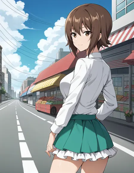 トリガーワード:nishizumi maho, 1girl, brown hair, short hair, brown eyes