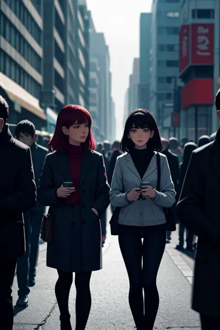 어떤 이유에서인지, 단순히 "거리" 태그만 사용하면 세이부신주쿠역 주변과 뒷골목의 장소들이 많이 나타납니다. 신주쿠처럼 보이지 않는다면 "인파"를 추가해 보세요. 카부키초의 이미지가 많이 나오게 됩니다.