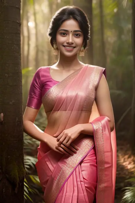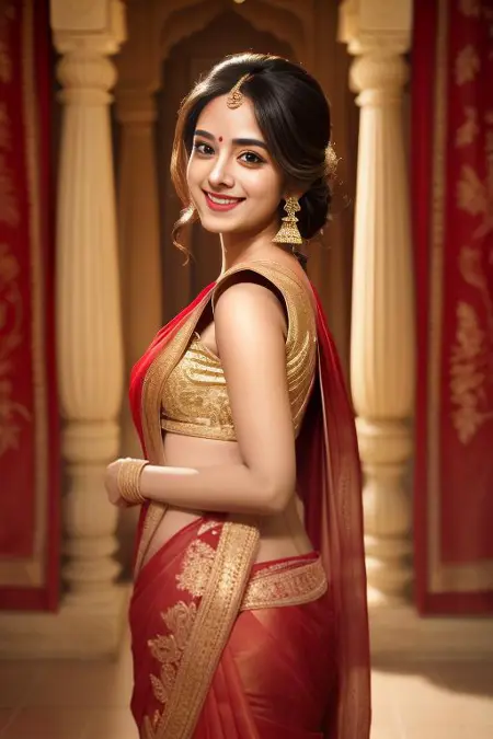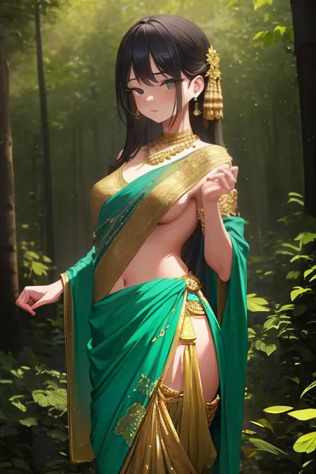 SariLoRa: 아시아 전통 복장인 아름다운 사리와 레헨가를 입은 사람들의 이미지를 생성하는 LoRa 모델.