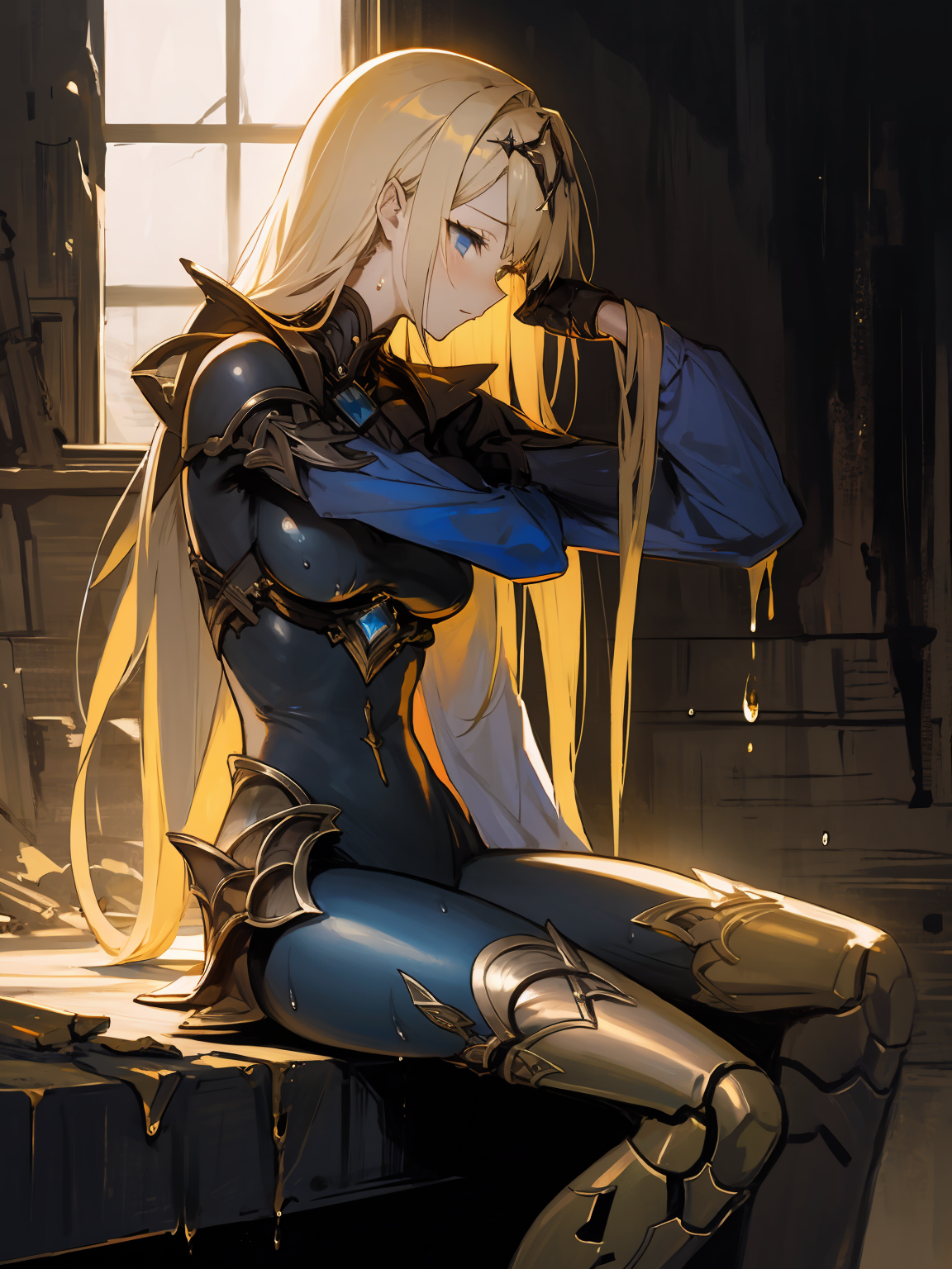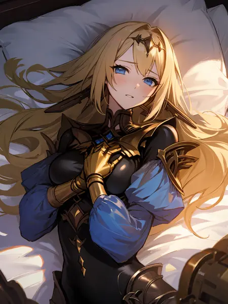 Basic Characteristics : Blonde hair , hair ornament , long hair , blue eyes ;