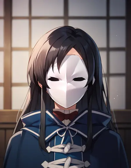 nanahoshi shizuka, long hair, black hair, bangs, sidelocks, mask