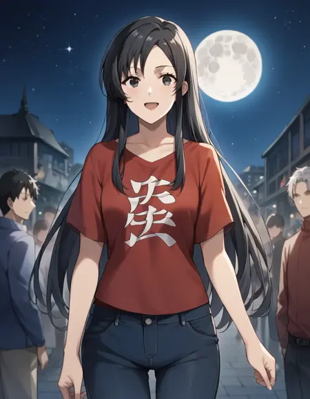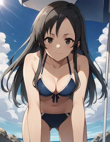 nanahoshi shizuka, long hair, black hair, bangs, sidelocks, black eyes