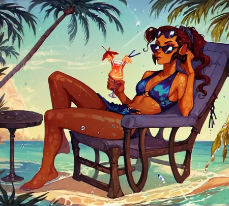 重み1.0は単体で良好な結果をもたらします。スタイルと組み合わせる場合は0.8~1.2が適しています。Wrathiaタグのみで黒白生成される場合がありますが、「オレンジ肌」タグを追加することでこの問題を修正できます。