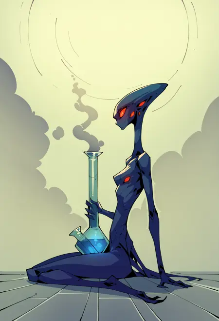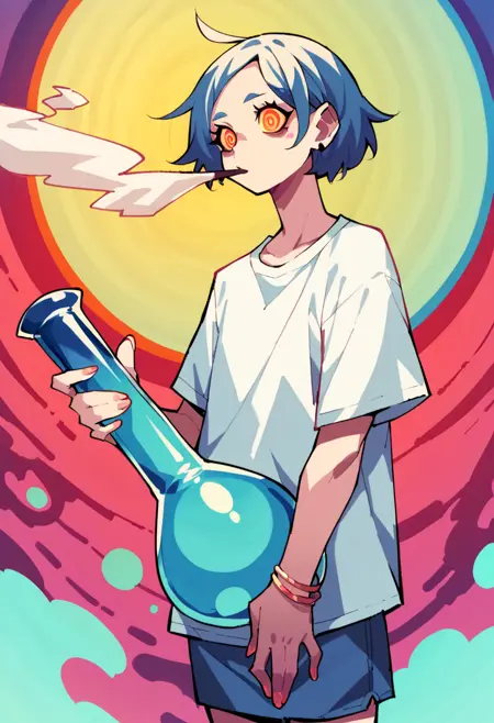 bong —— 此触发词整体效果很好,结构位置可灵活调整,但通常最常生效;若角色手持bong并希望表现为正在吸食,可在提示中加入“drinking”并使用低权重,以引导模型将动作指向其嘴唇。