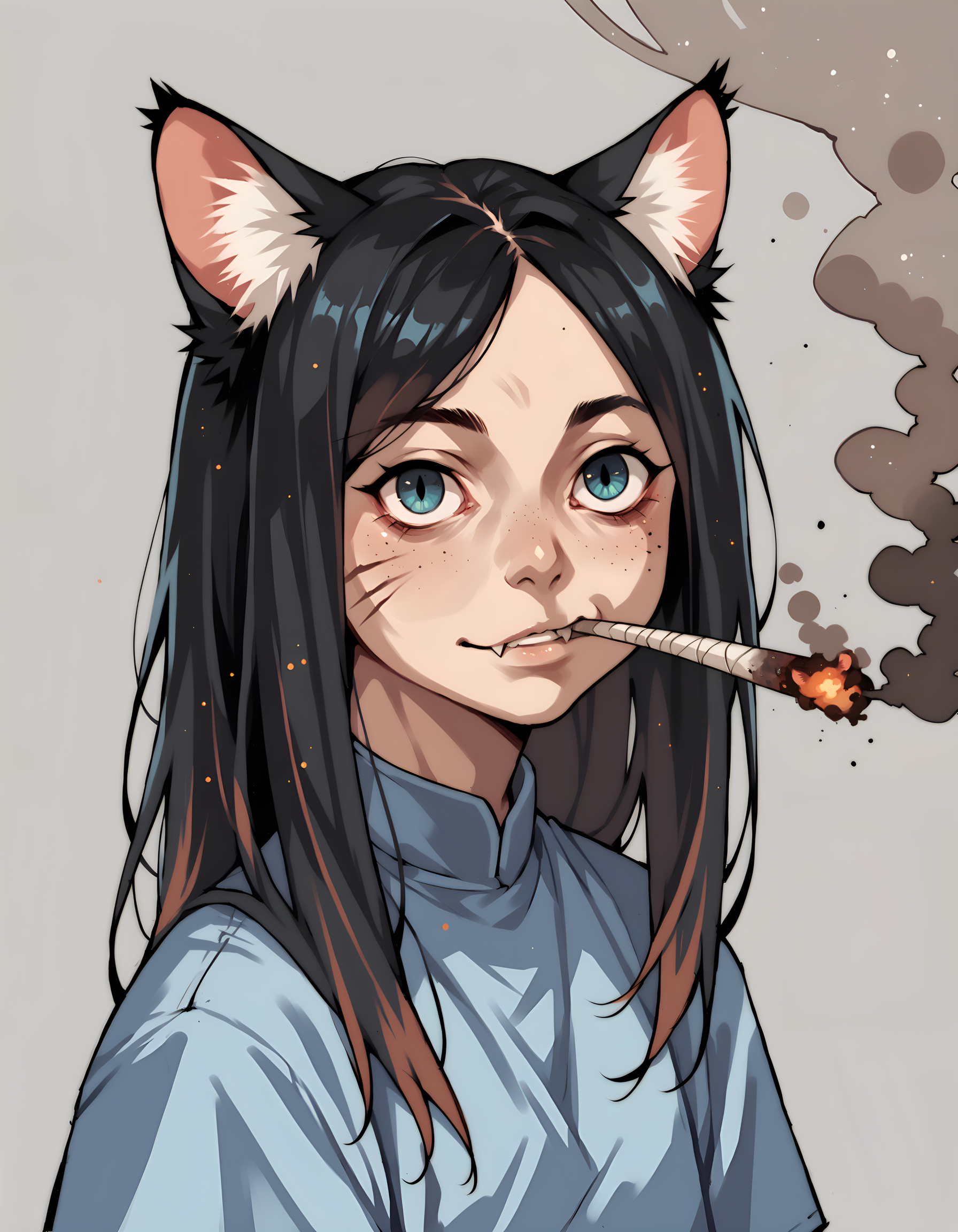 其他建议:加入烟雾、雾气、血丝眼、迷幻背景等元素,随意添加你喜欢的元素,这能极大提升画面美感!也可以自由搭配其他LoRA模型,打造你心中理想的画面!玩得开心,我真的很期待看到你们分享作品!