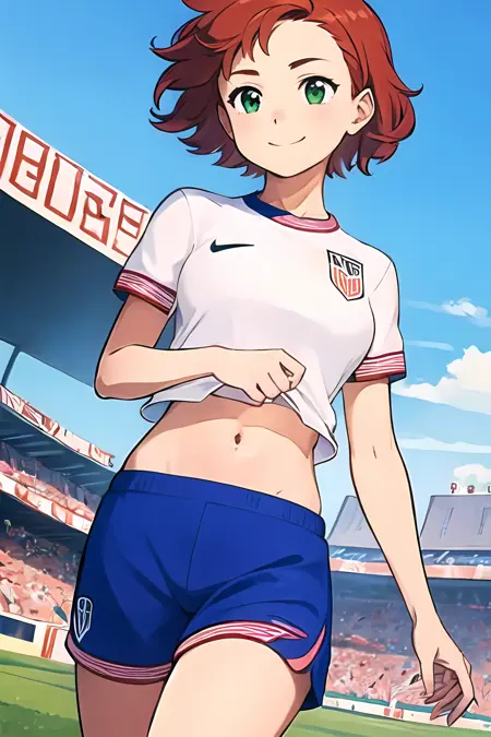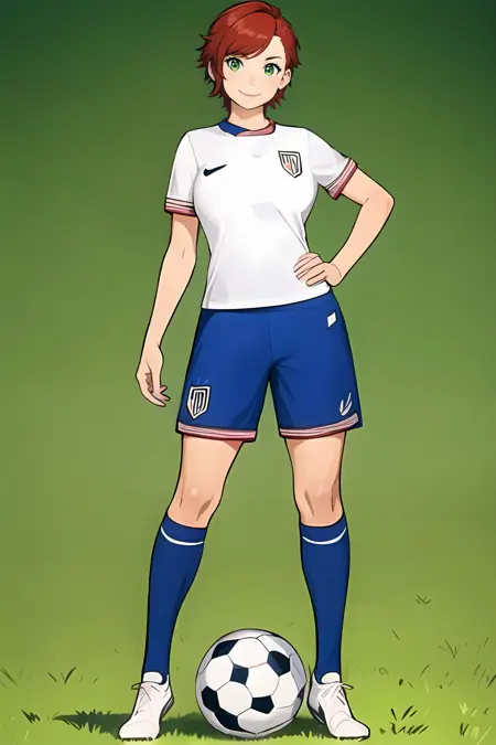 没有触发词,但像“运动服”、“足球制服”、“衬衫”和“短裤”这样的词有时能起到很大作用。“头部超出画面”可作为负面提示使用,因为这些图像经过裁剪以避免训练面部。