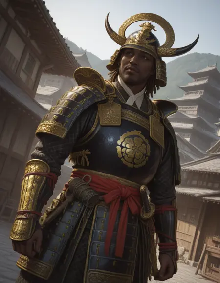 Yasuke 프롬프트: 사무라이 갑옷을 입은 ACYasuke 남자