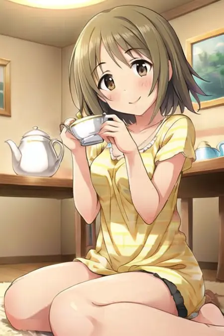 트리거 단어: 미무라 카나코, 단발, 갈색 머리카락, 갈색 눈