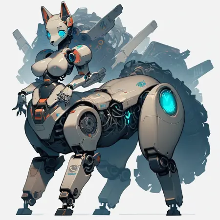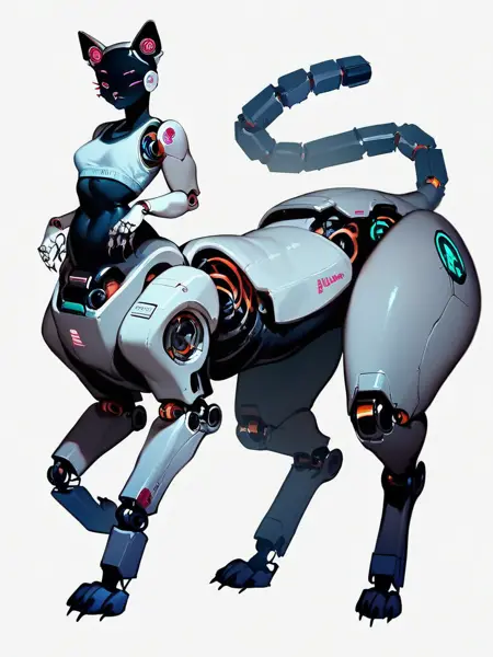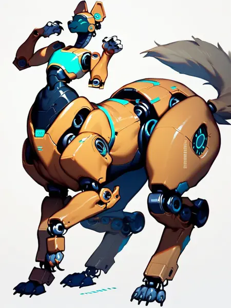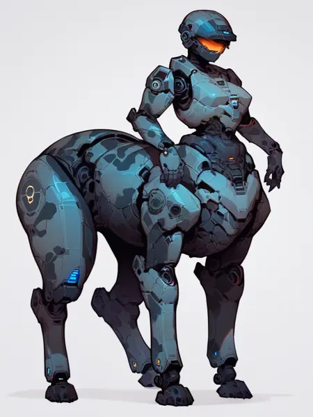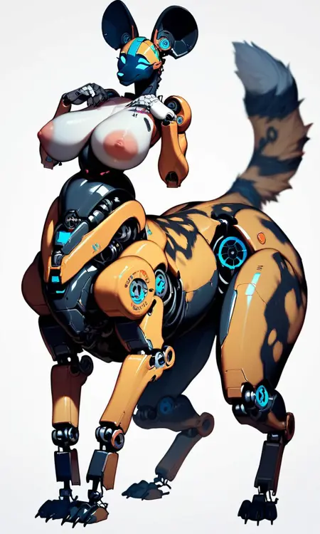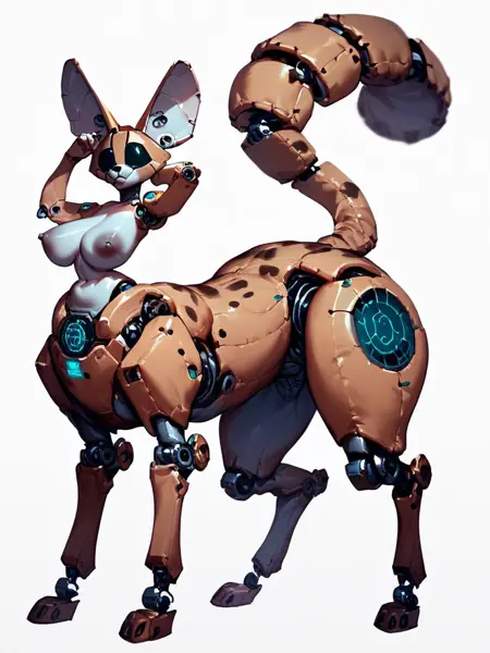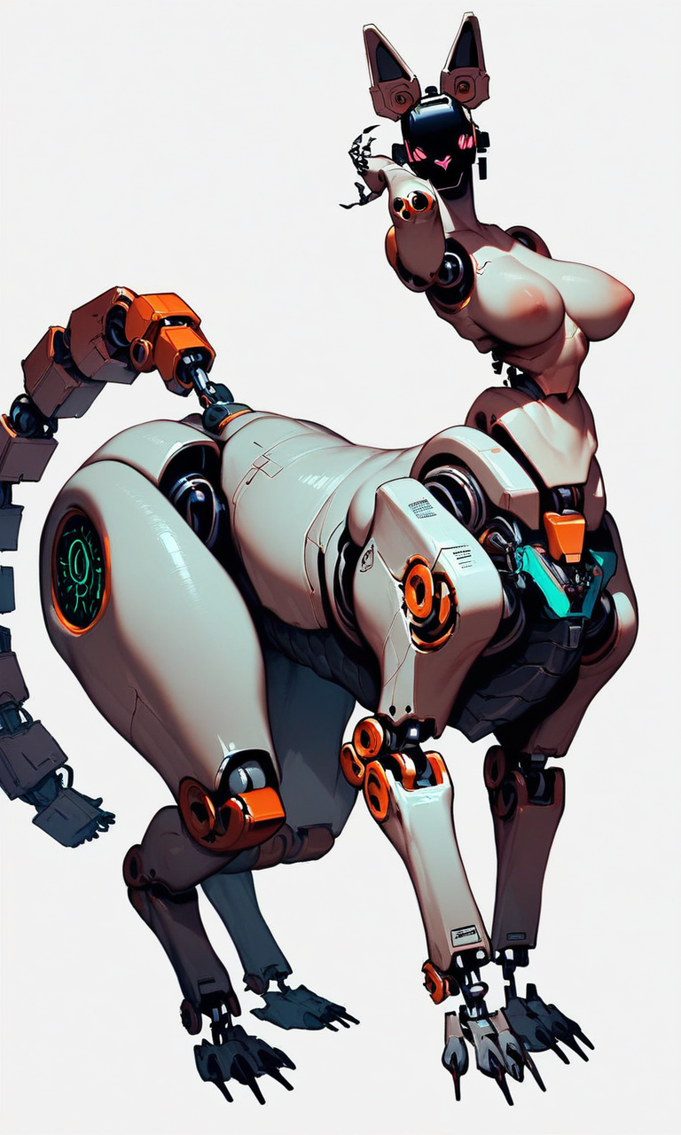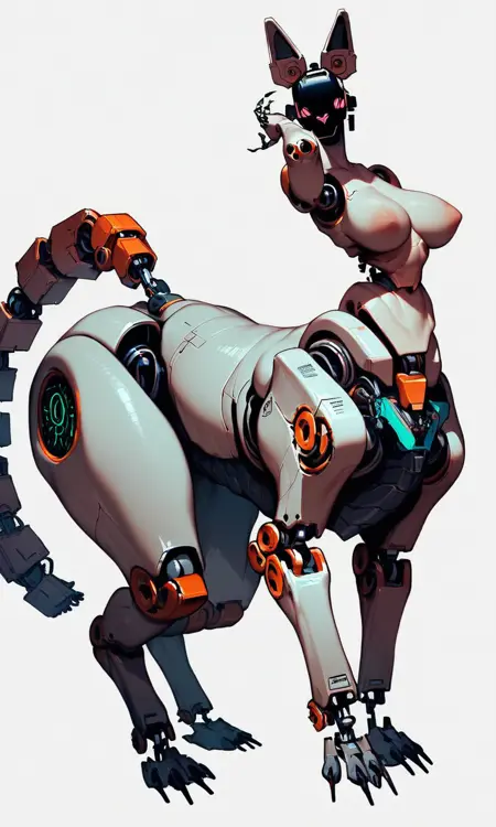 你的提示应类似这样:score_9, score_8_up, score_7_up, source_furry 或 source_anime, BREAK 单人, 机器人 [此处填写动物名称] taur, 动物耳朵, 爪子, 蹄子, taur, 四足, 机械, 活体, 机器, 机器人, 机器人关节, 趾行,