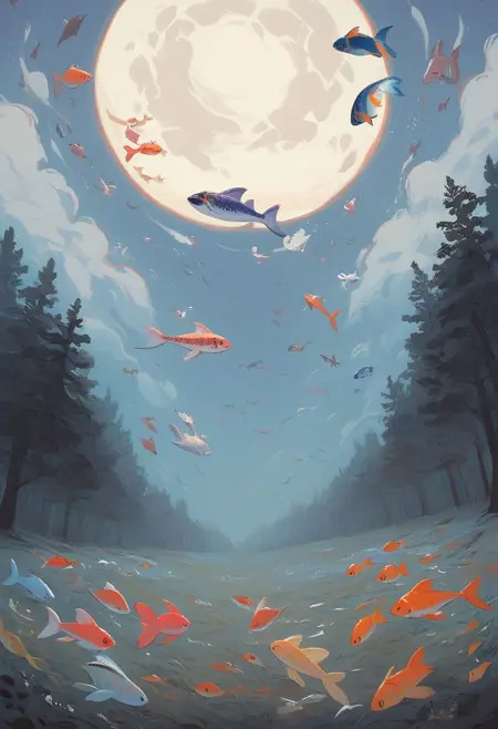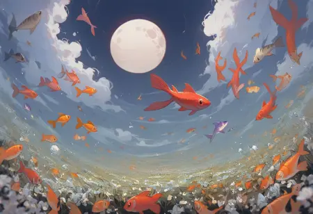 날아다니는 물고기, 떠다니는 물고기, 하늘을 헤엄치는 물고기, 베타 물고기, 다색 물고기, 물고기 떼, 30마리의 물고기, 거대한 물고기 떼, 물고기, 수생 생물, 큰 물고기 주변의 물고기 떼, 코이 앵글피시, 큰 물고기, 드래곤 피시, 코이 피시, 다색 물고기