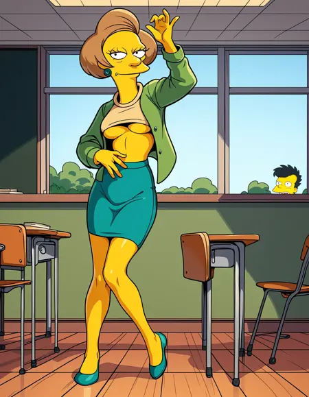 她曾住在永恒大道82号[5],后来在嫁给玛德·弗兰德斯的遗孀内德·弗兰德斯后,搬到了永恒大道744号[6]。在校外,艾德娜被描绘成一个典型的中年单身成年人。