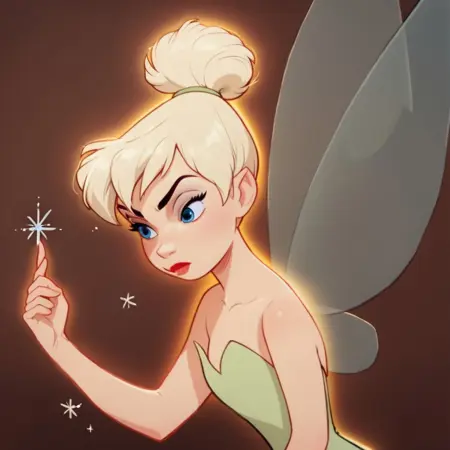 A LORA for Tinkerbell. There will be two versions of this LORA; Tinkerbell as she appeared in the 1953 film "Peter Pan" and Tinkerbell as she appeared in the 2008 "Tinkerbell" and it's sequels. This LORA was trained to work with PonyXL based models, so use the standard prompts: score_9, score_8_up, score_7_up, score_6_up, score_5_up, score_4_up