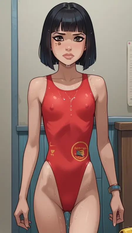 连体泳衣,红色连体泳衣,高腰泳衣,遮盖乳头,