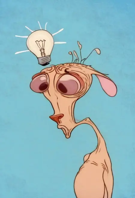 誰かが気になっているかもしれませんが、「Invinshin」という言葉は、Stimpyがあるエピソードで「Invention(発明)」という単語を間違えて書いたものです。